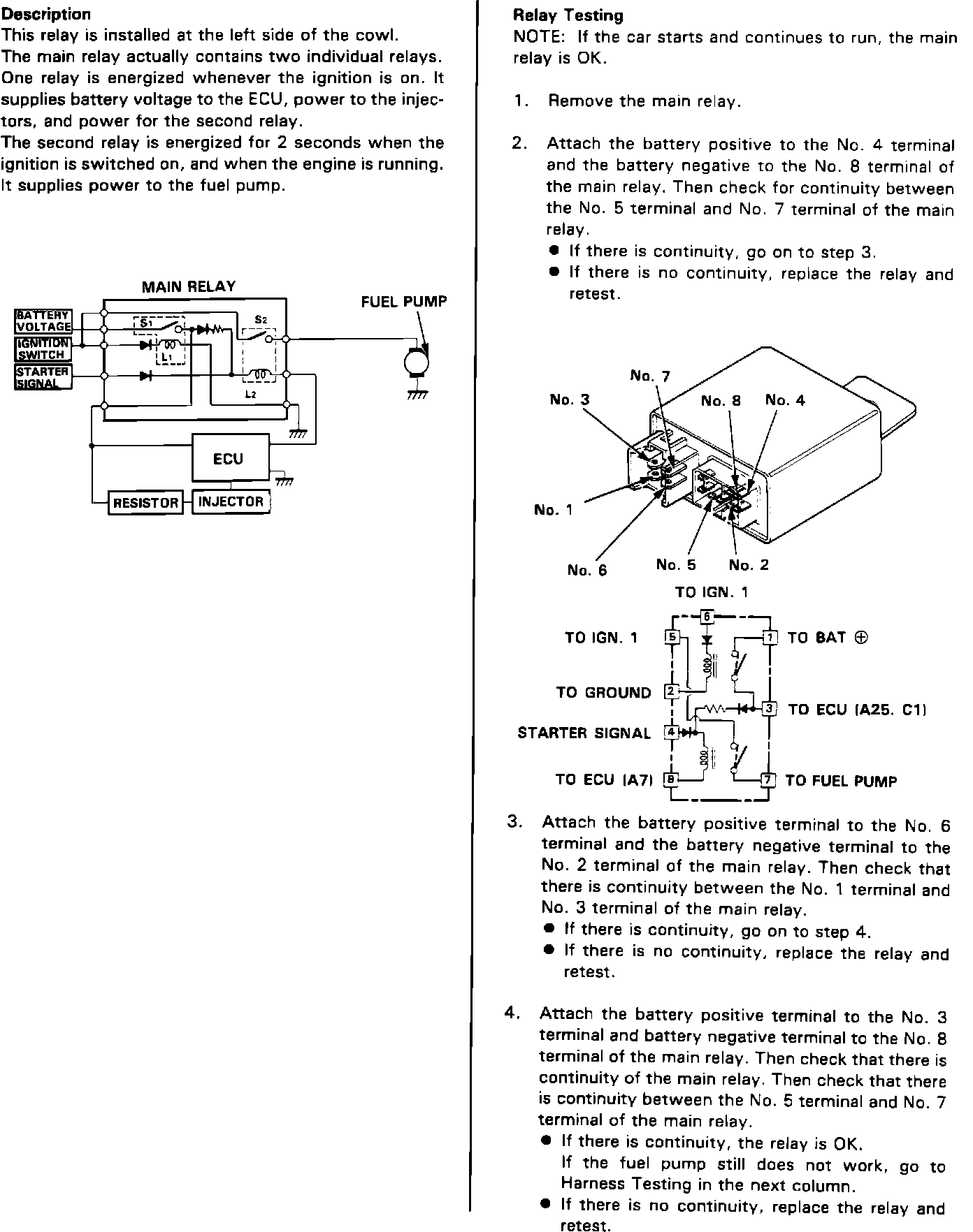 Main Relay Testing: