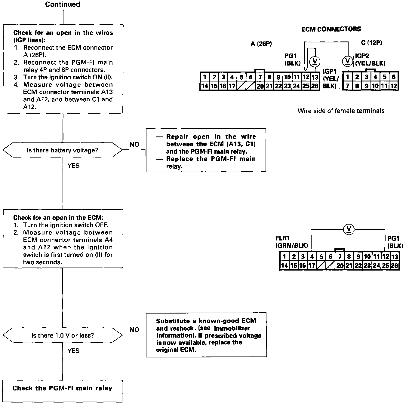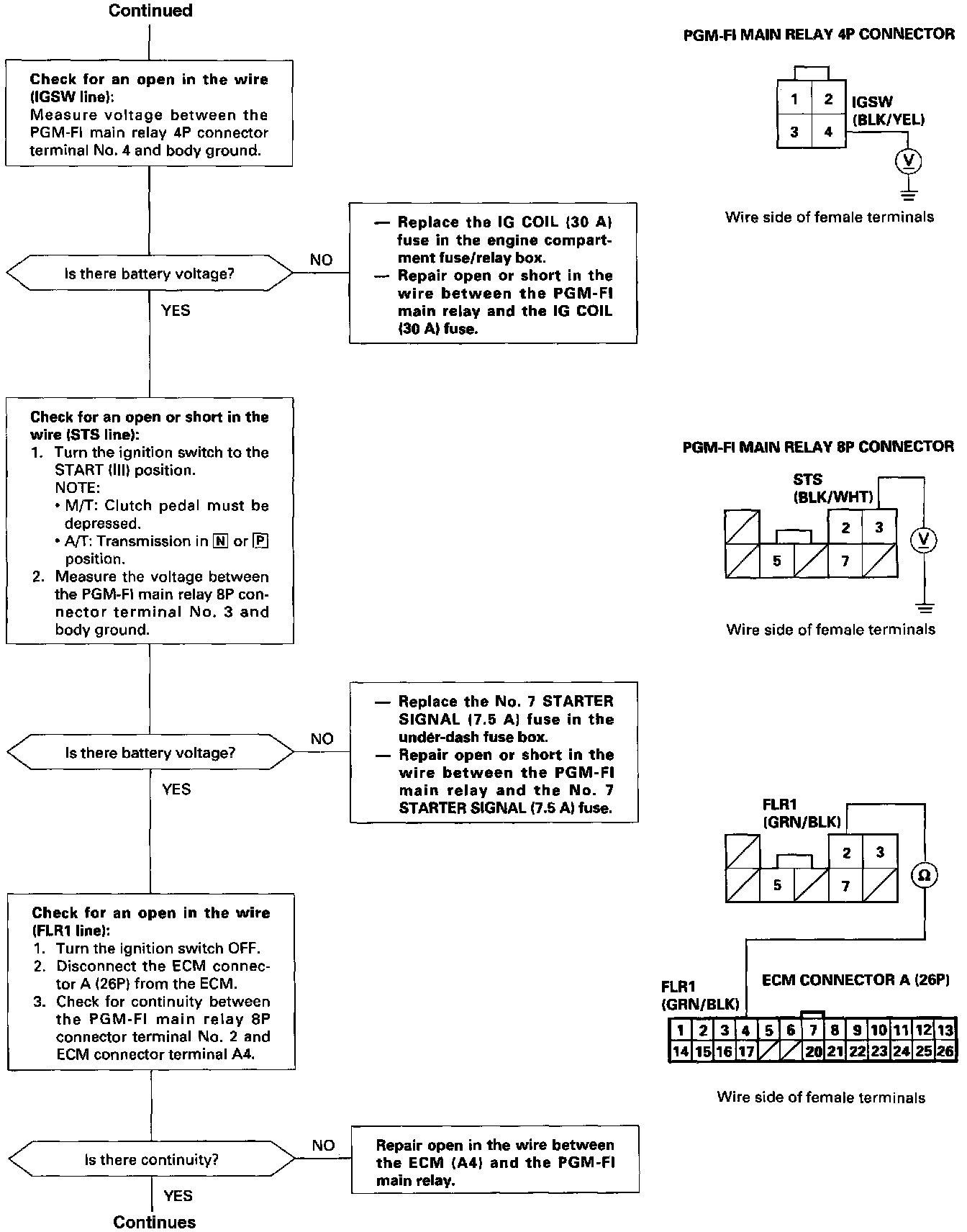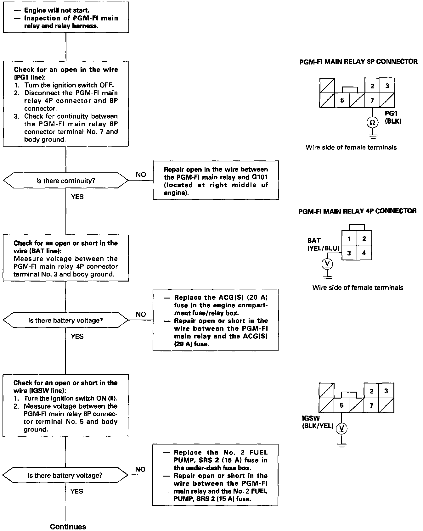 PGM-FI Main Relay Circuit Troubleshooting