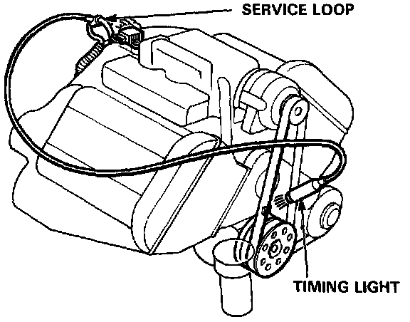 4. Connect a timing light to the service loop; while the engine idles, point the light toward the pointer on the timing belt cover.