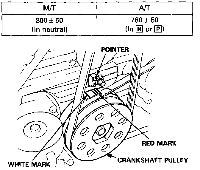 Ignition Timing: 15° ± 2° BTDC (RED mark) at Idle Speed (rpm):