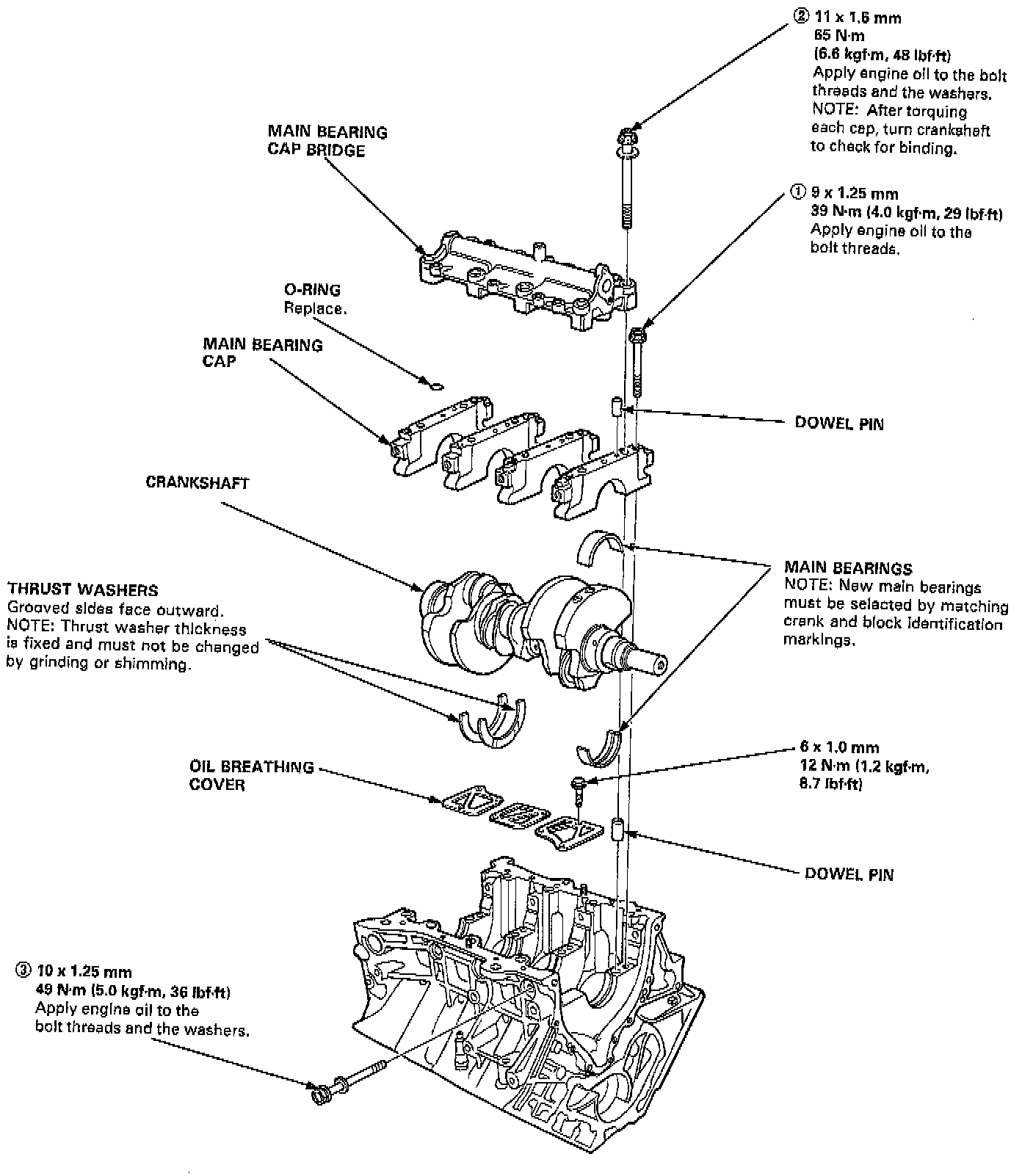 Apply clean engine oil to the bolt threads and washer contact surfaces.