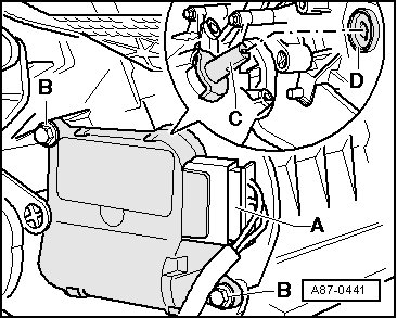 - Remove connecting element - C - of the recirculation flap motor (V113) from shaft - D - of the recirculation flap