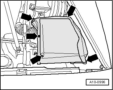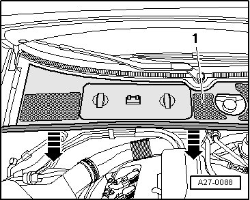 - Remove the rubber seal - arrow - from the plenum chamber cover- 1 -.