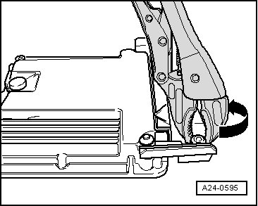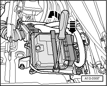 - Using a screwdriver, carefully pry off mounting bracket - arrow - and remove the Engine Control Module (ECM) (J623) from the electronics box.
