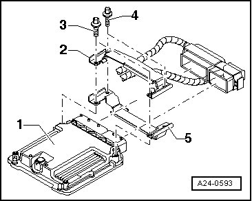- Remove the electrical harness connector retaining brackets - 2 - and - 5 - and the electrical harness connectors from the Engine Control Module (ECM) (J623).