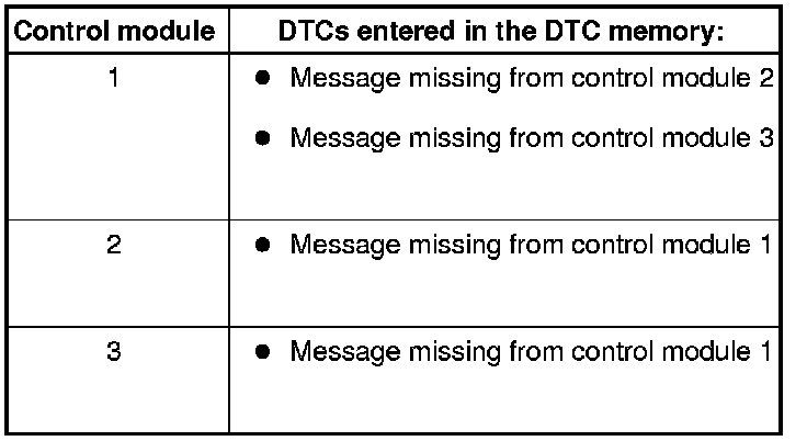 Based on the DTCs entered in the DTC memories, you can see that control module 1 is not connected to control modules 2 and 3.