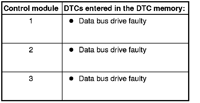If you are unable to determine any cause in the bus wiring for the DTC "Data bus drive faulty", check to see whether one of the control modules is responsible for this DTC.