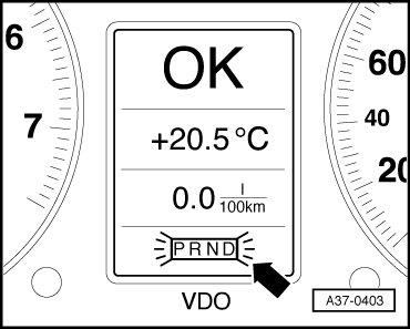 1. The trouble code is stored and a substitute program allows the vehicle to continue to be driven (with some limitations). The driver is not alerted to this condition, since it is not critical to safety nor for the transmission. The transmission range display in the instrument cluster indicates as normal the particular range that has been selected - arrow -. The driver may notice a difference in vehicle driveability and contact an authorized dealer.