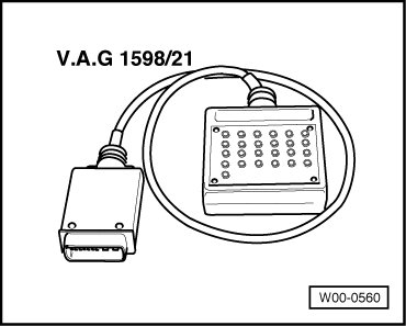 - Connect adapter (VAG 1598/21) to wiring harness to control module.