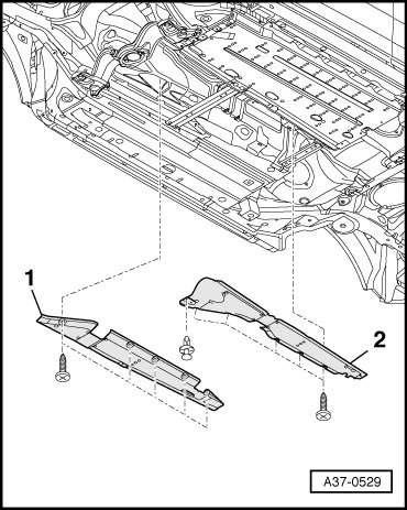 - Loosen cover for vehicle floor and heat shield above exhaust system in rear area of transmission. Push heat shield a little to one side.