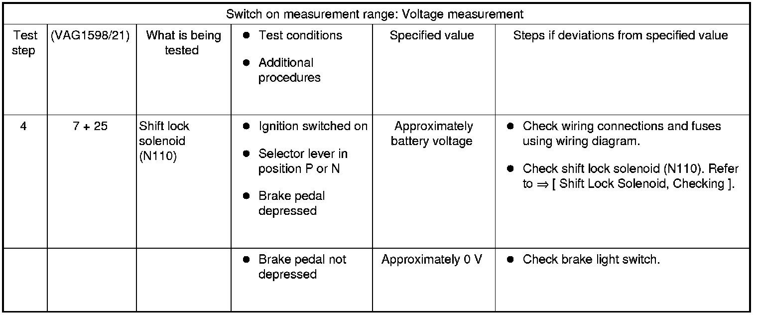 - Disconnect harness connector at shift lock solenoid (N110) - A -.