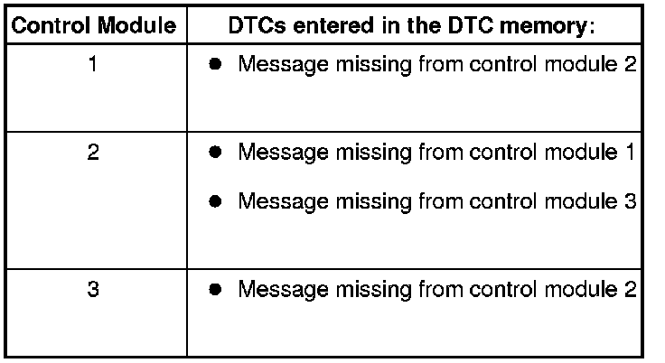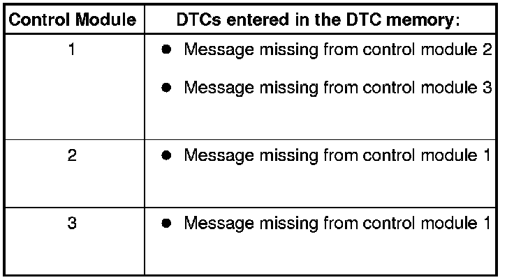 Based on the DTCs entered in the DTC memories, it can be seen that control module 1 is not connected to control modules 2 and 3.