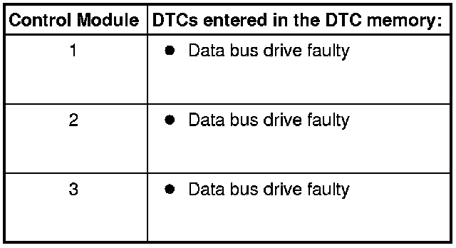 If you are unable to determine any cause in the bus wiring for the DTC "Data bus drive faulty", check to see whether one of the control modules is responsible for this DTC.
