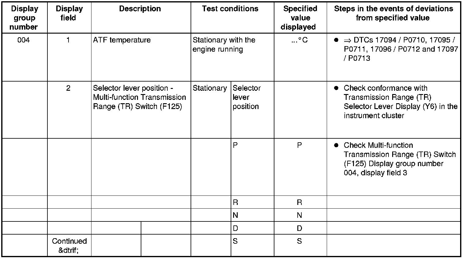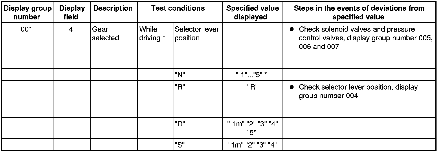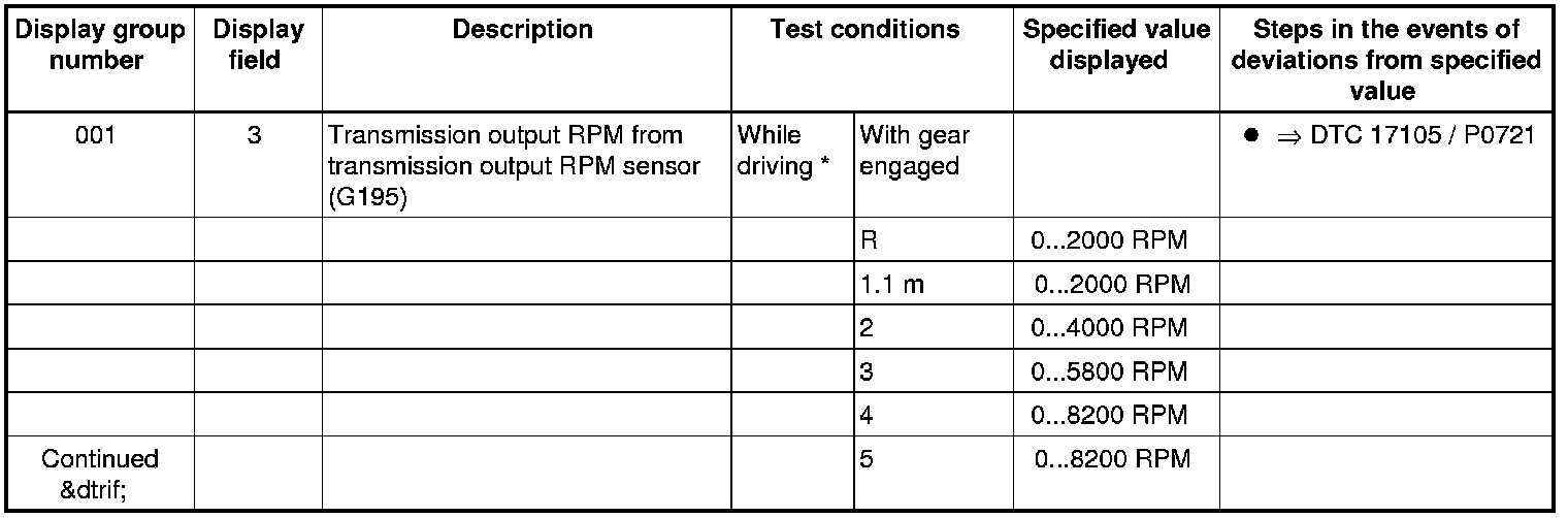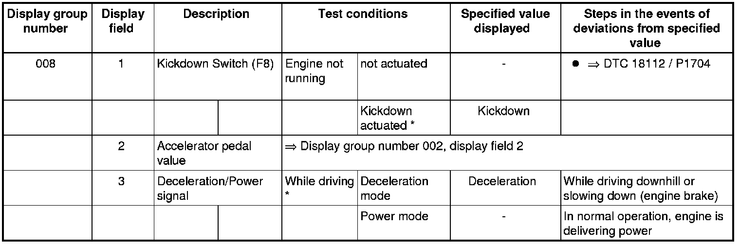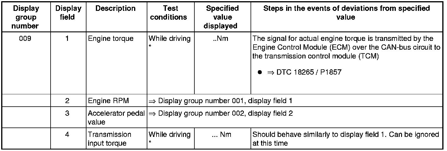 • "Converter clutch control": The values given apply to the "adjusted condition" of the converter clutch. Under unfavorable conditions (for example, accelerating on a hill) this condition will not be reached until 20 seconds after the completion of the shift. During this adjustment phase, slip values up to 350 RPM can be reached.