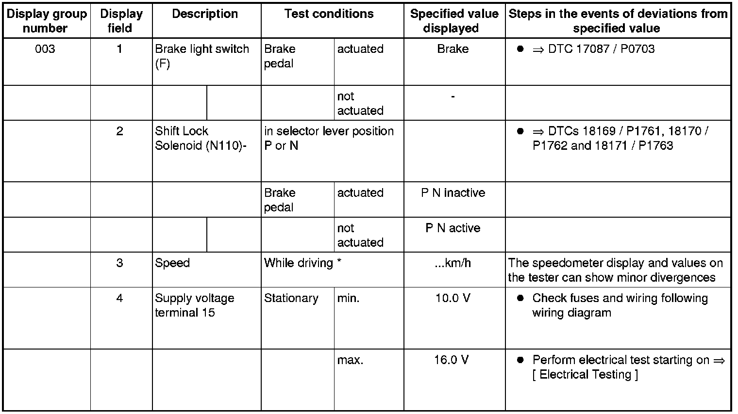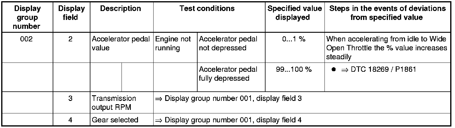 • "Converter clutch closed" The shift must be completed (wait at least 1 second ), the torque converter lockup clutch (WK) must be closed and accelerator pedal value must be constant.