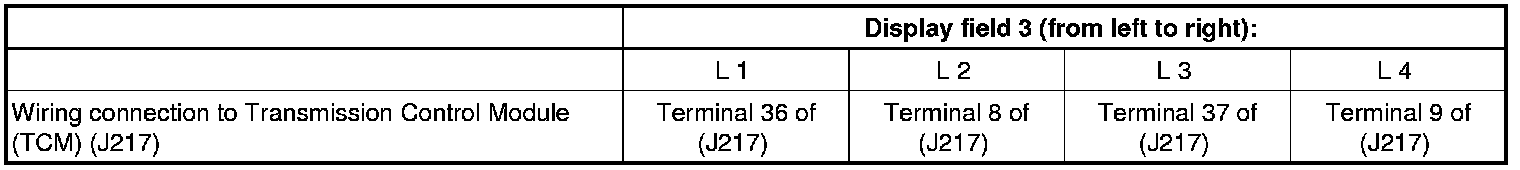 • The input signals for Multi-function Transmission Range (TR) Switch (F125) can be checked at the Transmission Control Module (TCM).