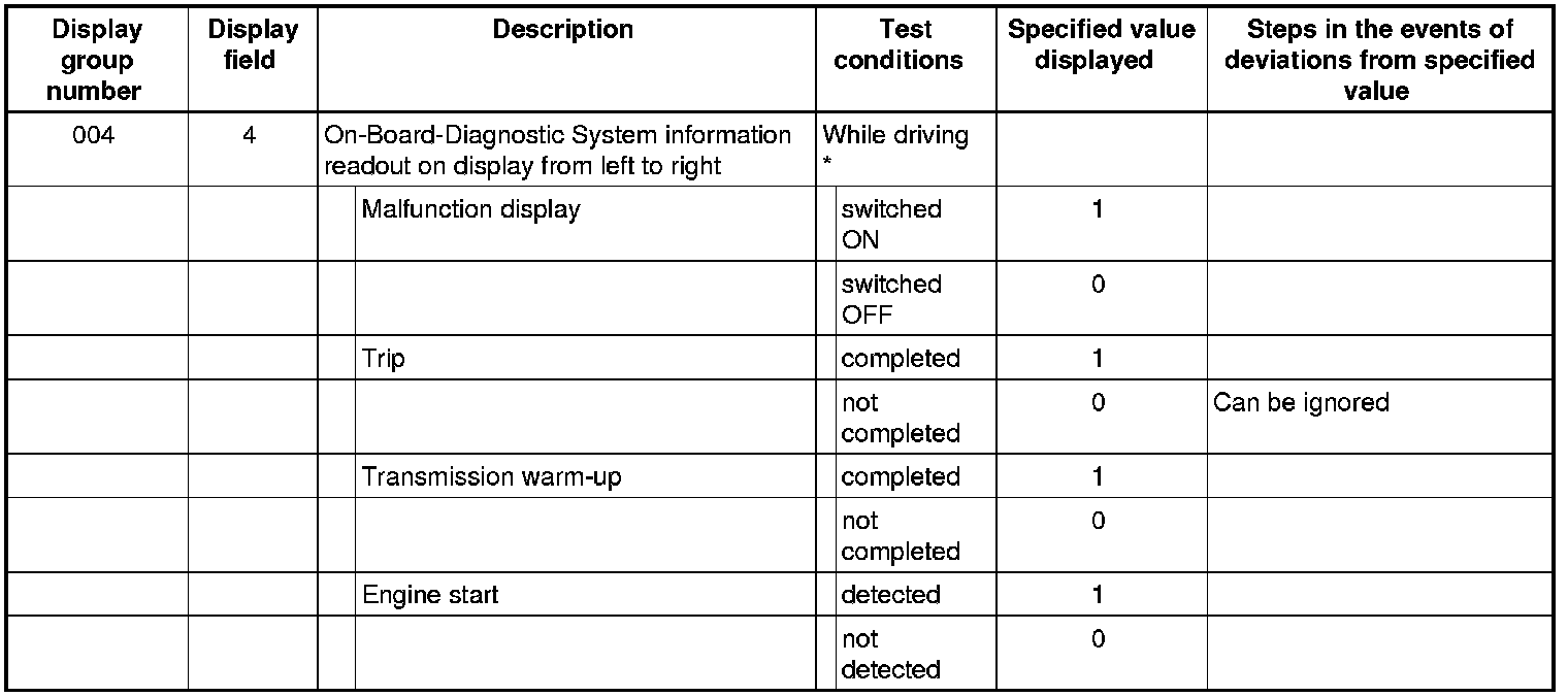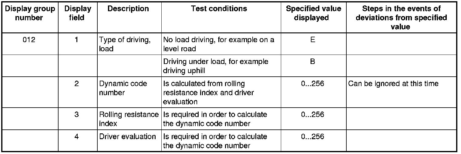 • Display field 2 and 4: When the Engine Control Module (ECM) is replaced, the same display as on the old control module must appear after installing the new control module. If this is not the case, the wrong Engine Control Module (ECM) has been installed, or it has been incorrectly coded.