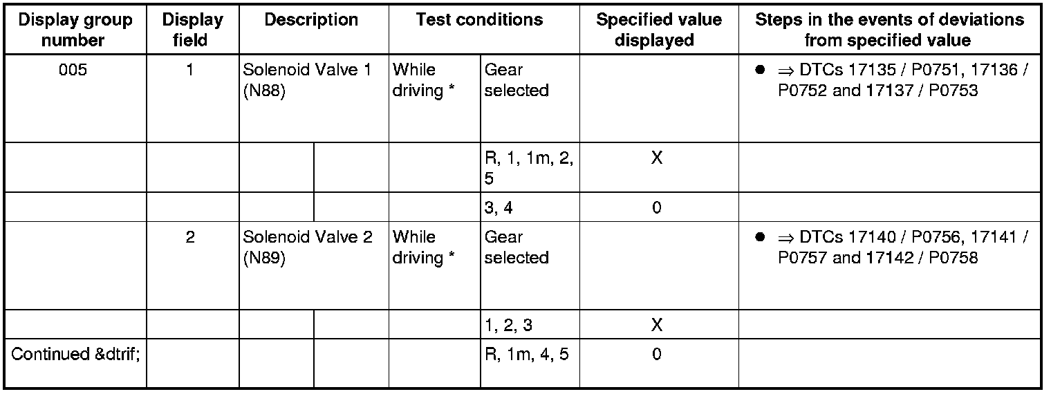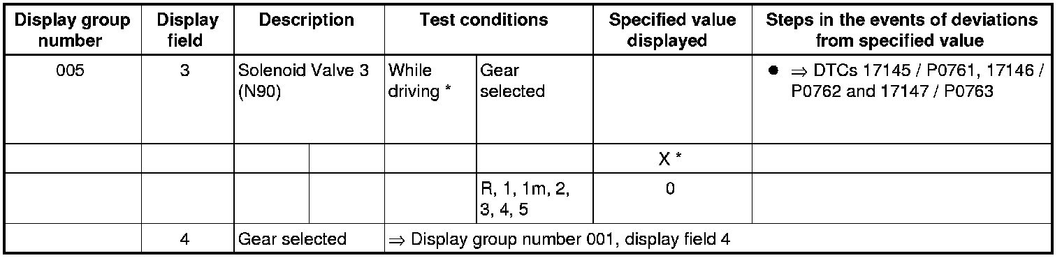 * Solenoid Valve 3 (N90) is actuated only briefly during certain shift operations.