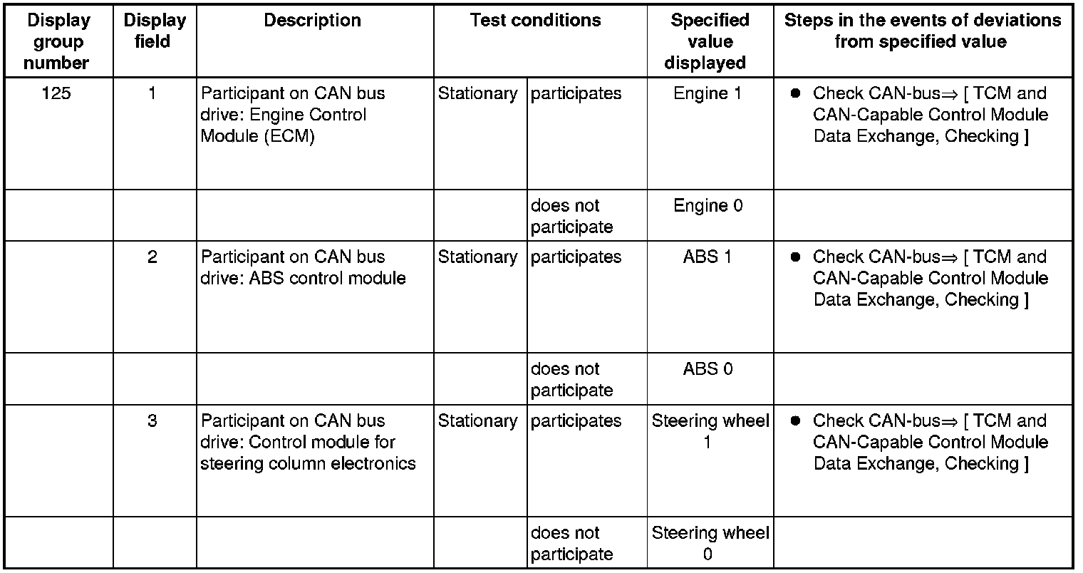 • If "0" is displayed and no fault has been set in the DTC memory, the corresponding control module does not have CAN capability (or is faulty).