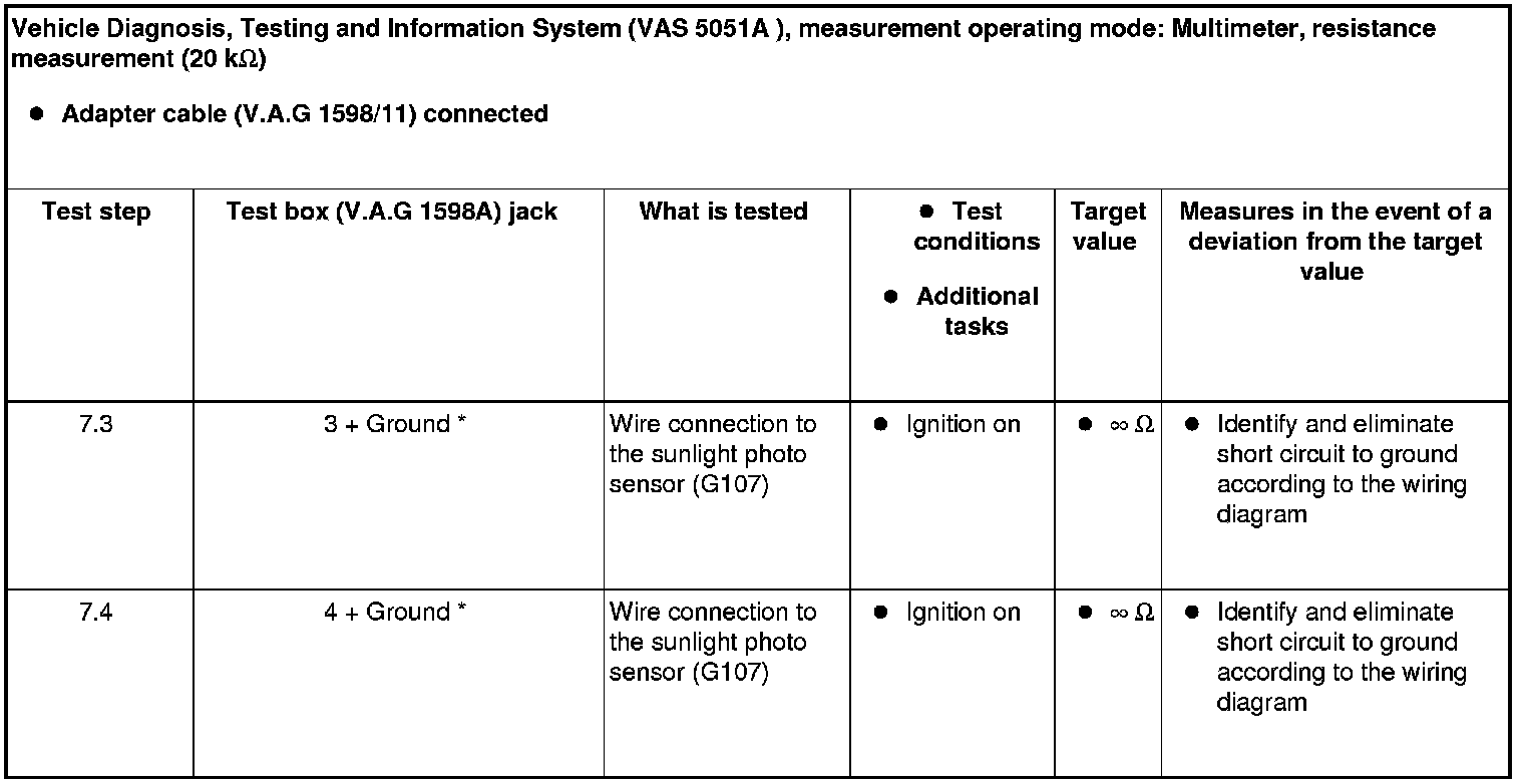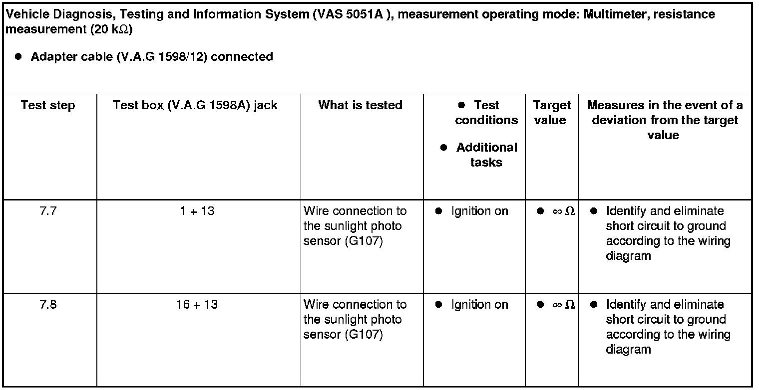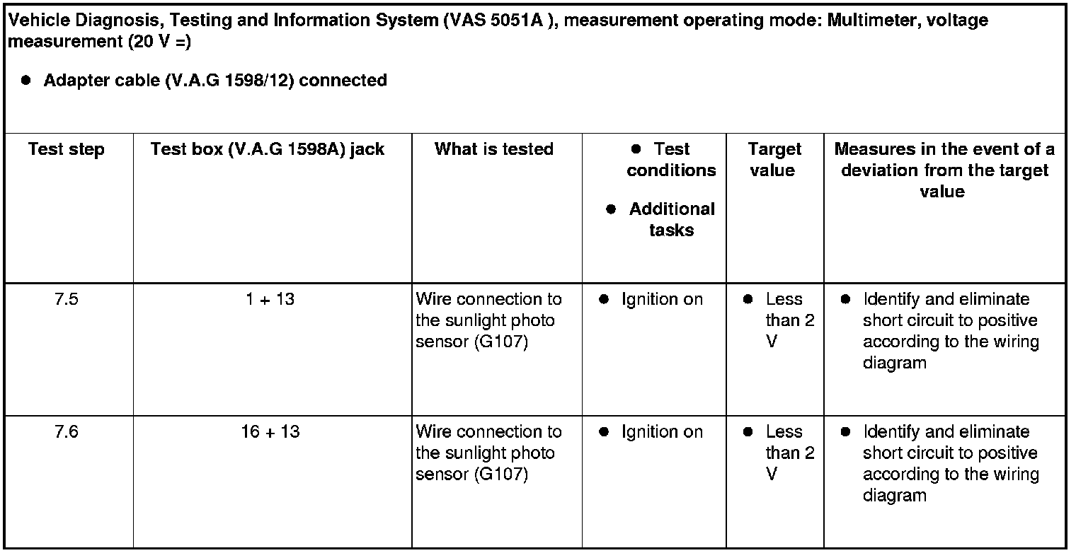 If the assignment between the sunlight photo sensor (G107) and the Climatronic control module ( J255) A/C control head is incorrect, the Climatronic control module (J255) A/C control head cannot evaluate the signal from the sunlight photo sensor (G107) and the A/C system control will malfunction.