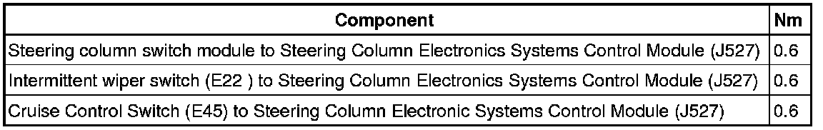 - Remove steering column switch module => [ Steering Column Switch Module ].