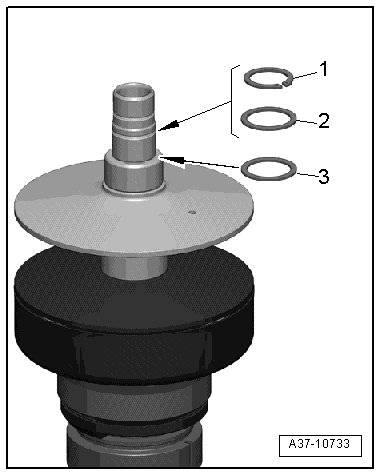 • Install the new circlip - with the same strength as the old circlip - and the old shim with the new disc set "I" again.