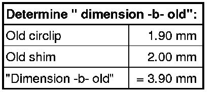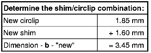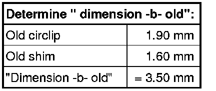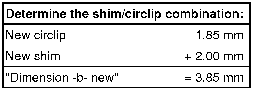 - Put together combination of shims and circlips available, which will result in "dimension -b- new".