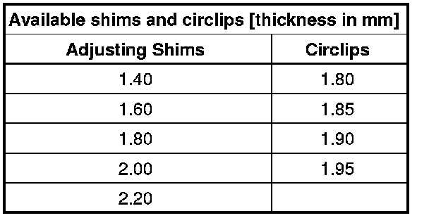 • The total thickness of the new shim and the new circlip must not exceed " dimension -b- new".
