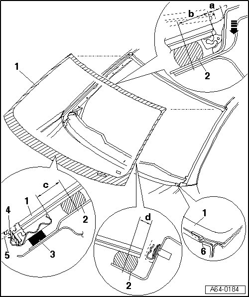 • Stickers on windshield (e.g. for airbag) must be replaced in same position on new windshield.