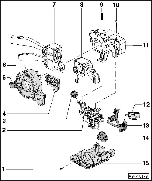 • Removing and installing, refer to => [ Airbag Spiral Spring/Return Spring With Slip Ring ] Airbag Spiral Spring/Return Spring With Slip Ring