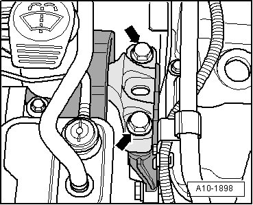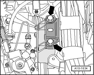 - Remove the transmission mount bolts from the transmission bracket - arrows - one after the other and replace them (if the engine has not been installed yet).