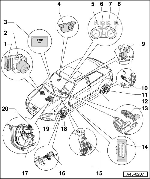 • Beginning with MY 09, the ESP sensor unit (G419) is inside the ABS control module.