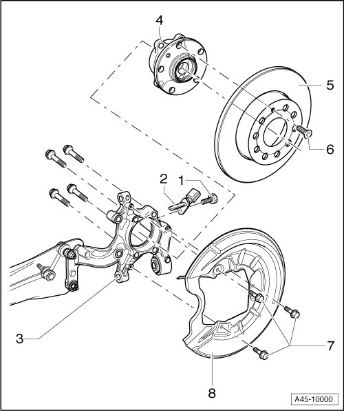• Removing and installing, refer to => [ Speed Sensor at Rear Axle with All-Wheel Drive ] Speed Sensor at Rear Axle With All-Wheel Drive