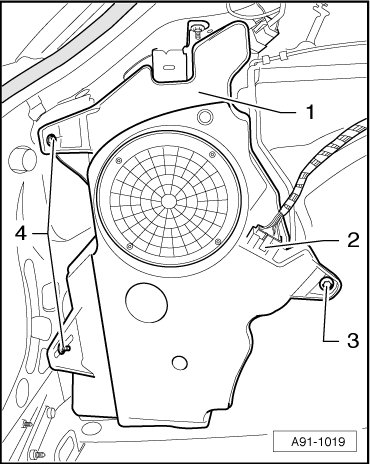 Bass Speakers Amplifier, in luggage compartment, left -R44-