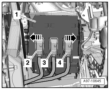 - Release retaining springs - arrows - and remove vehicle electrical system control module (J519) - 1 - from the base mount.