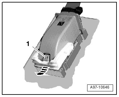 - To disconnect electrical connector, press catch - 1 -, turn retaining bracket in - direction of arrow - and remove connector.