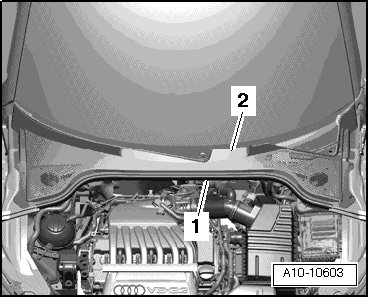 - Remove rubber seal - 1 - and remove plenum chamber cover - 2 -.