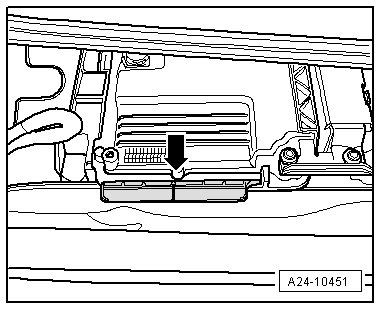 - Open the clamp - arrow - and remove the ECM.