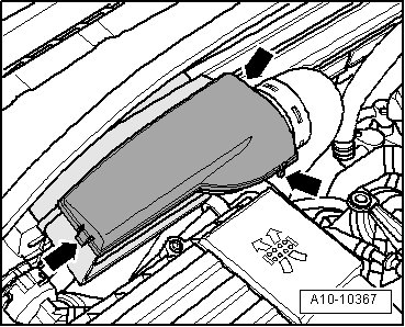 - Remove the cover for the air guide; to do this, disengage the side clips- arrows -.