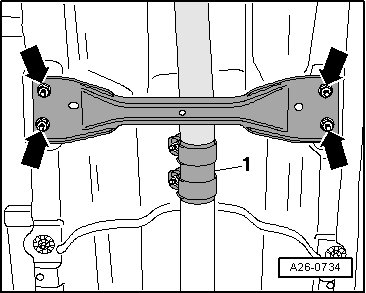 - Remove the driveshaft flexible disc bolts - arrows - from the bevel box while counter holding at the triangular flange with a lever.