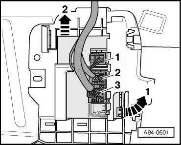 - Disconnect the connectors - 1 - and - 2 -.