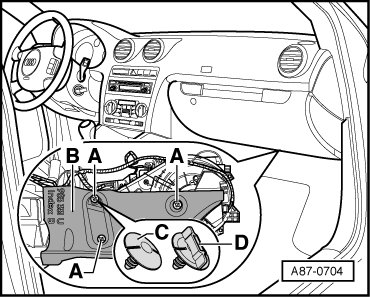 - Remove screw clips - A - (different versions - C - and - D -) and remove insulation mat - B -.