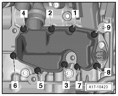 - Tighten the bolts to 9 Nm in the following sequence: - 1 to 9 -.