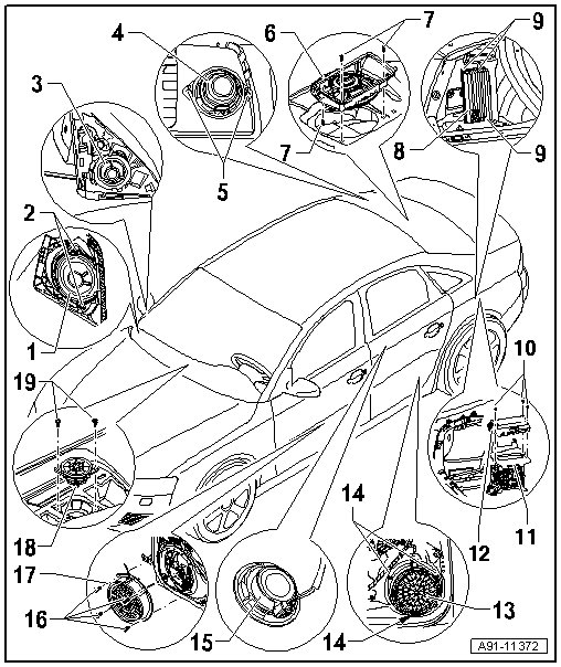 • CAN, removing and installing, refer to => [ Digital Sound System Control Module (J525), CAN ] Digital Sound System Control Module (J525), CAN.