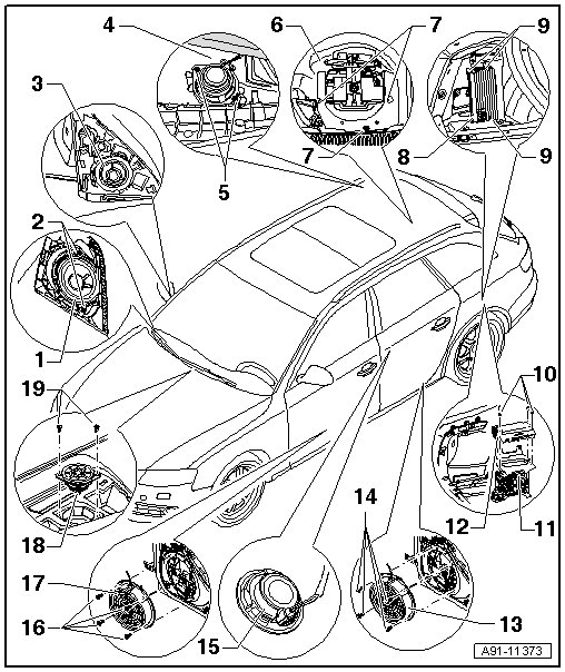 • CAN, removing and installing, refer to => [ Digital Sound System Control Module (J525), CAN ] Digital Sound System Control Module (J525), CAN.