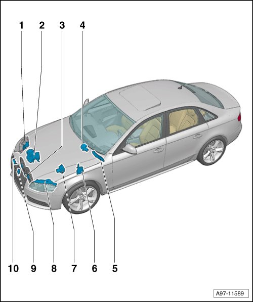 • Component Location and connectors for models with left-hand drive (with -T91- and -T105- ): => [ ] Locations