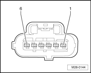 - Disconnect the Throttle Position (TP) Sensor (G79)/Accelerator Pedal Position Sensor 2 (G185) 6-pin electrical harness connector - 2 -.