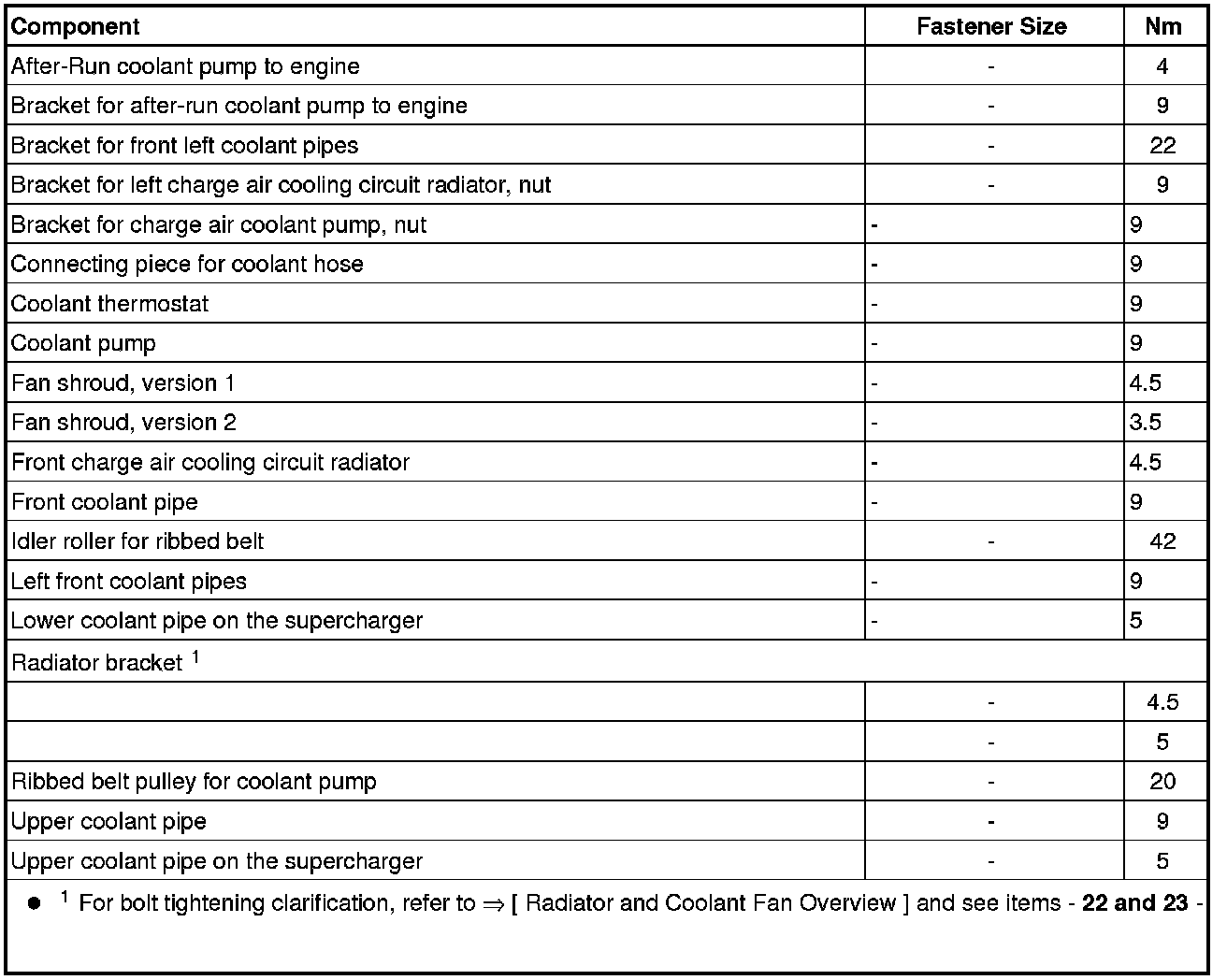 Charge Air Cooling Pump (V188) , Tightening Specifications