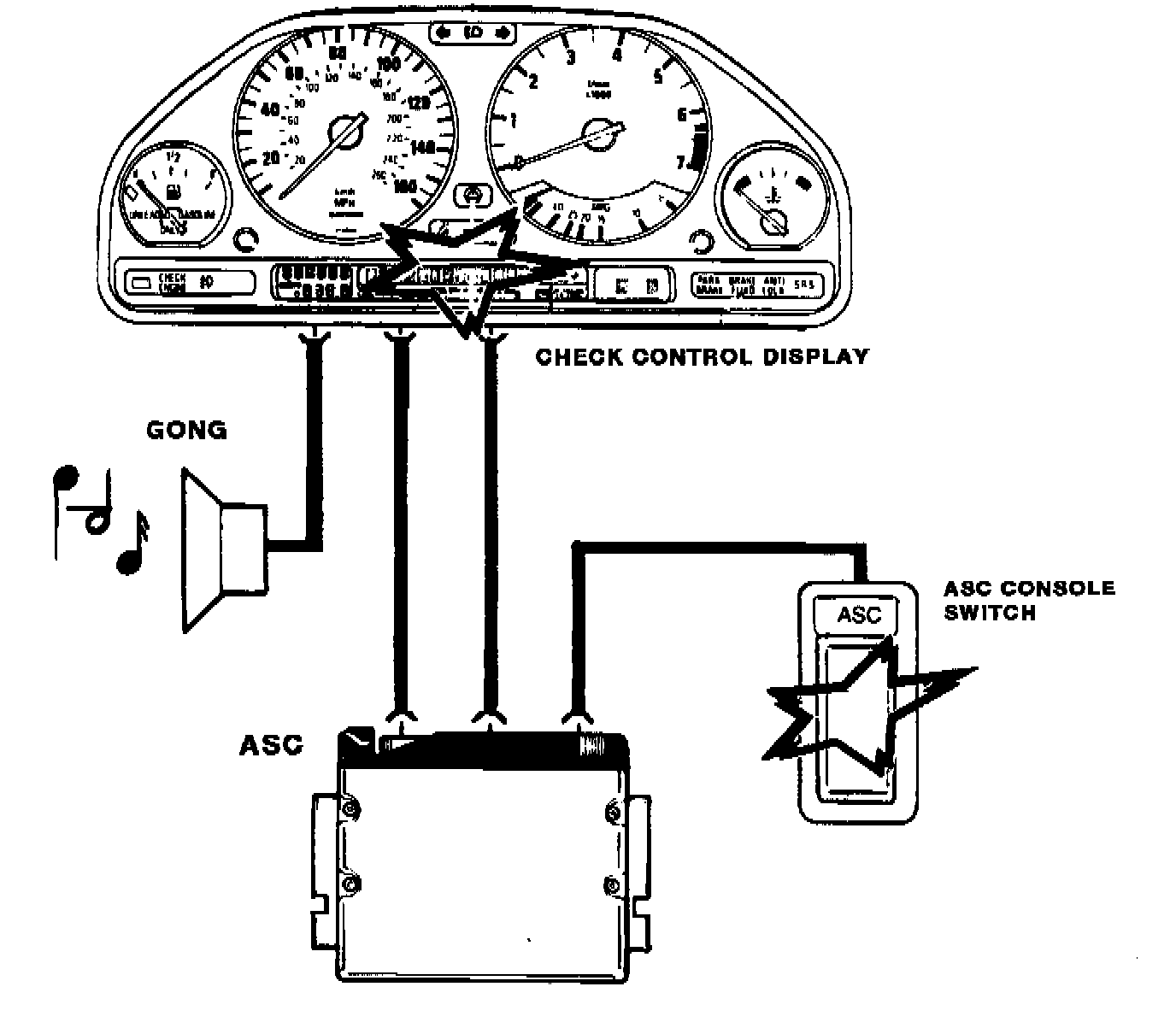 The early version traction control system used the check control matrix for driver warning of a traction control regulation. This early version did not contain the ASC warning lamp in the instrument cluster.