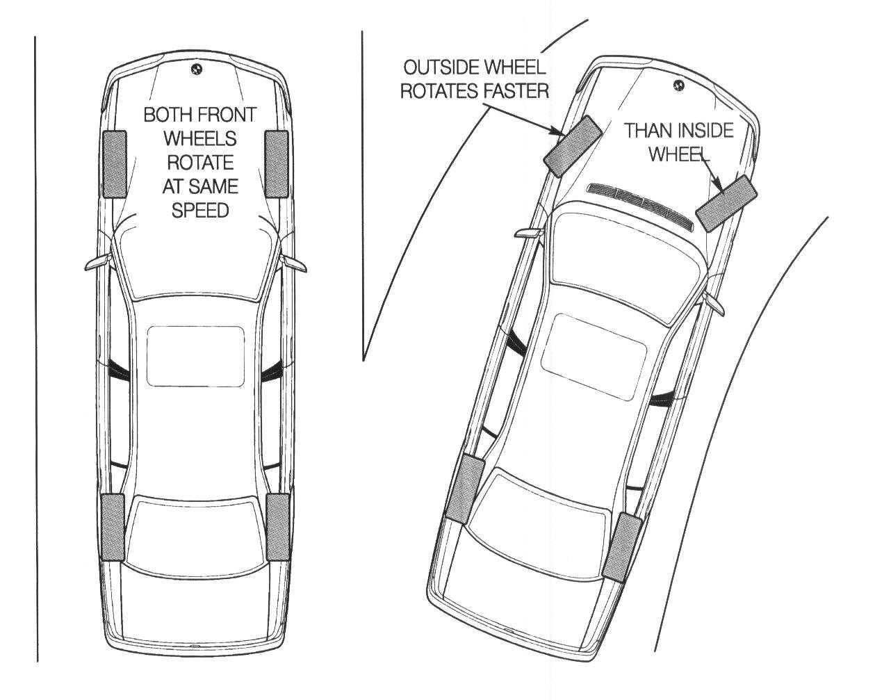 For any given turning angle and speed of the vehicle, there is a set difference between the rotational speeds of the front wheels. If the rotational speeds of the front wheels vary from this set difference, it means the vehicle is understeering or oversteering through the turn. This could lead to an unstable condition and possible loss of control.